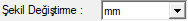 Şekil değiştirme ![]() Şekil değiştirme değerleri için birim seçilir. |