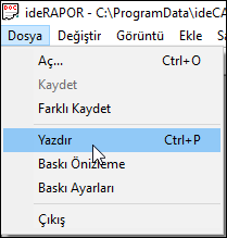Rapor programı Dosya/Yazdır satırını tıklayın.