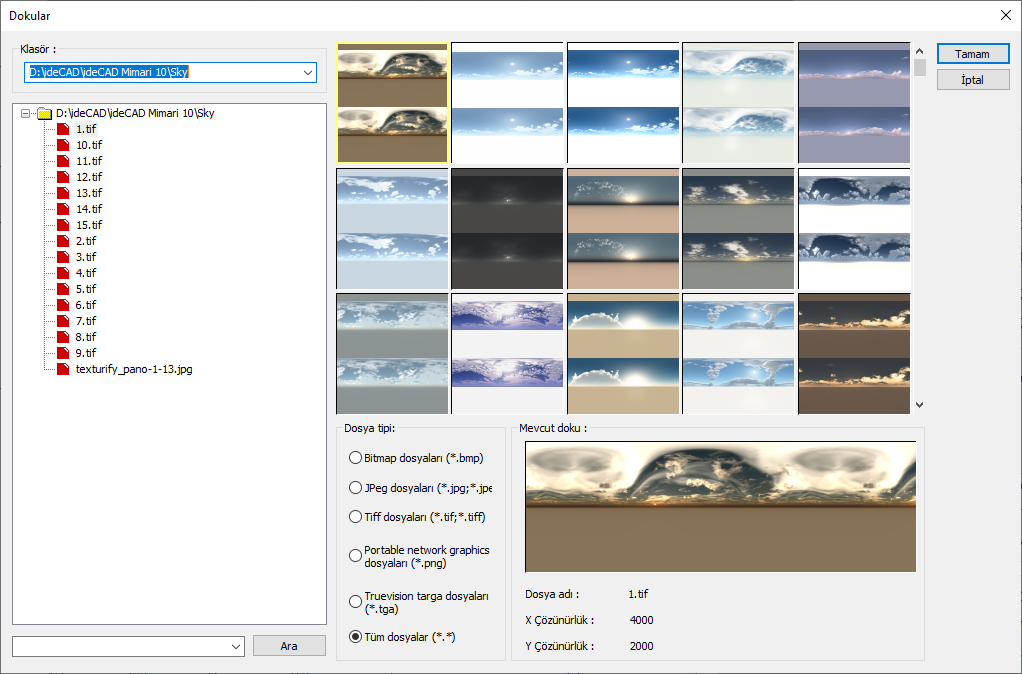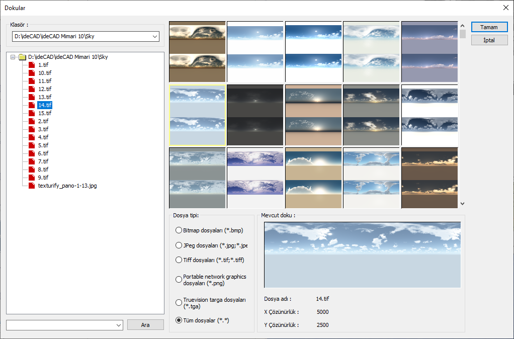 Dokular diyaloğundan klasör olarak kurulum klasöründe yer alan sky klasörünü seçin.