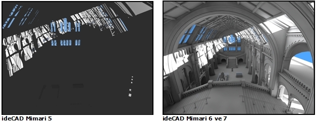 Final gather örnekleme sayısı ![]() Fotonların çarptığı yüzeyler dışında, fotonların hiç isabet etmediği arada kalan yüzeylerin de ortamdaki ışık hesabından istifade ederek aydınlanmasını sağlar. Örnekleme sayısı arttıkça arada kalan yüzeylerin aydınlanma özelliği ve kalitesi artacaktır. *** Final gather örnekleme sayısı, fotonların değdiği noktaların arasında kalan taralı alanın aydınlatılmasını sağlar. ![]() 5 versiyon render motorundaki render sonucu: Direkt ışık almayan yüzeyler aydınlanmaz. Aynı sahnenin birebir aynı ayarlarla 6 ve 7 versiyondaki render sonucu: Global aydınlatma (endirekt aydınlatma) ve yeni render moturu farkı bu iki karede gayet net görülmektedir. Gölge alanlarda kalan, direkt ışık almayan yüzeyler foton ışık hesabıyla aydınlanır. |