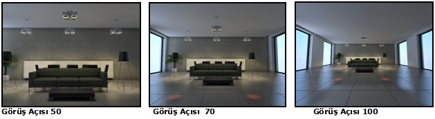 Görüş açısı ![]() Kameranın yerini değiştirmeden render'ın bakış açısını değiştirmeye yarar. Bu özellik kamera objektifinin görüntü alabildiği açıdır. Özellikle küçük m2'li iç hacimlerde kamera hareketleri ile uygun açı yakalamaya çalışırken kamera mekânın dışına çıkmakta ve iyi bir render karesi yakalama güç olmaktadır. Bu gibi durumlarda görüş açısı değiştirilebilir. ![]() Şekilde 1. ve 2. kameranın duvarla arasındaki mesafe aynıdır, fakat 2. kameranın görüş açısı değerinin artırılması 1. kamera ile renderda görülemeyen arka duvardaki daire içerisindeki alanı görebilme olanağı sağlar. Yani kameranın konumunun değiştirilmeden daha geniş açıyla bakabilme işlemidir. Ancak görüş açısı genişledikçe render alınacak alan sabit olduğundan (1024x768 gibi) perspektifte uzaklaşma görülür. ![]() |