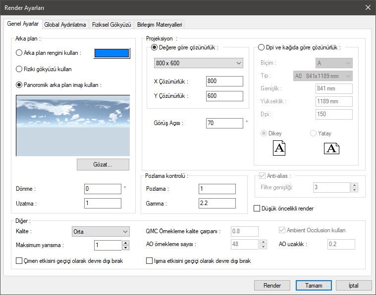 Arka plan rengini kullan ![]() Seçilen renk render sahnesinin arka plan rengi olarak kullanılır. |