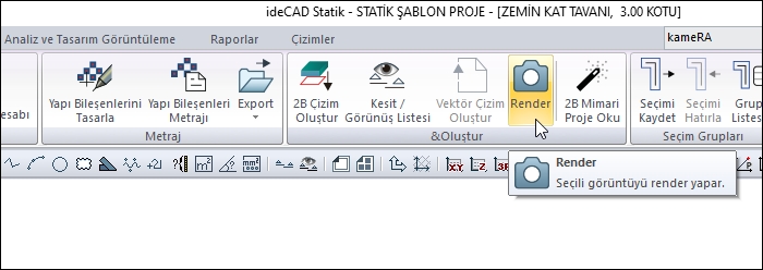 Ribbon menü Görselleştirme sekmesi Render başlığı altından ulaşabilirsiniz.