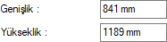 Genişlik/Yükseklik ![]() Standart biçimlere ait genişlik ve yükseklikler otomatik gelir ve sabittir. Serbest seçeneğinde genişlik ve yükseklik belirlenebilir. |