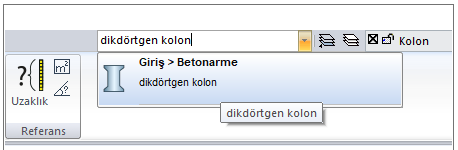 Örneğin Dikdörtgen Kolon komutunu aramak için,
