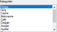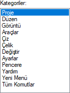 | Kategoriler  Komutlar menü düzenine göre kategorilere ayrılmıştır. |