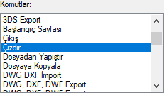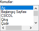 | Komutlar  Seçilen menüde yer alan komutlar listelenir. |