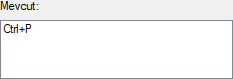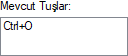 | Mevcut tuşlar  Tanımlanmış kısayol varsa gösterilir. |