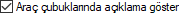 | Araç çubuklarında açıklama göster  İkon üzerine gelindiğinde açıklama kutusu çıkar. |