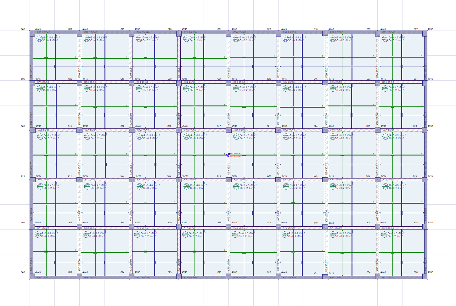 Rijit bodrum katlarında bodrum perdeleri yapının diğer kısımlarına göre daha rijit özellik gösterir. Bu nedenle bodrum çevre perdelerine bağlanan döşemelerin gerilmeleri diğer döşemelerden büyük çıkmaktadır. 4.5.7.2 'de anlatıldığı gibi geçiş kat döşemeleri yarı rijit diyagram çözümü kullanılarak iki boyutlu sonlu elemanlar ile modellenir. Bu modelleme sonucunda oluşan düzlem içi döşeme gerilmelerinde de geçiş kat döşemelerinde rijit bodrum çevre perdelerine aktarılan gerilmeler ortaya çıkmaktadır. Aşağıdaki görselde bir binanın geçiş katındaki plan görünüşü verilmiştir.