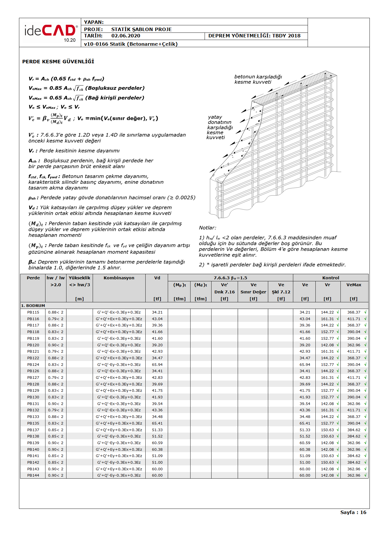 Deprem hesabı sonucunda bodrum katlardaki rijit çevre perdelerine aktarılan kuvvetler TBDY Madde 7.11.5 'ya göre hesaplanır.