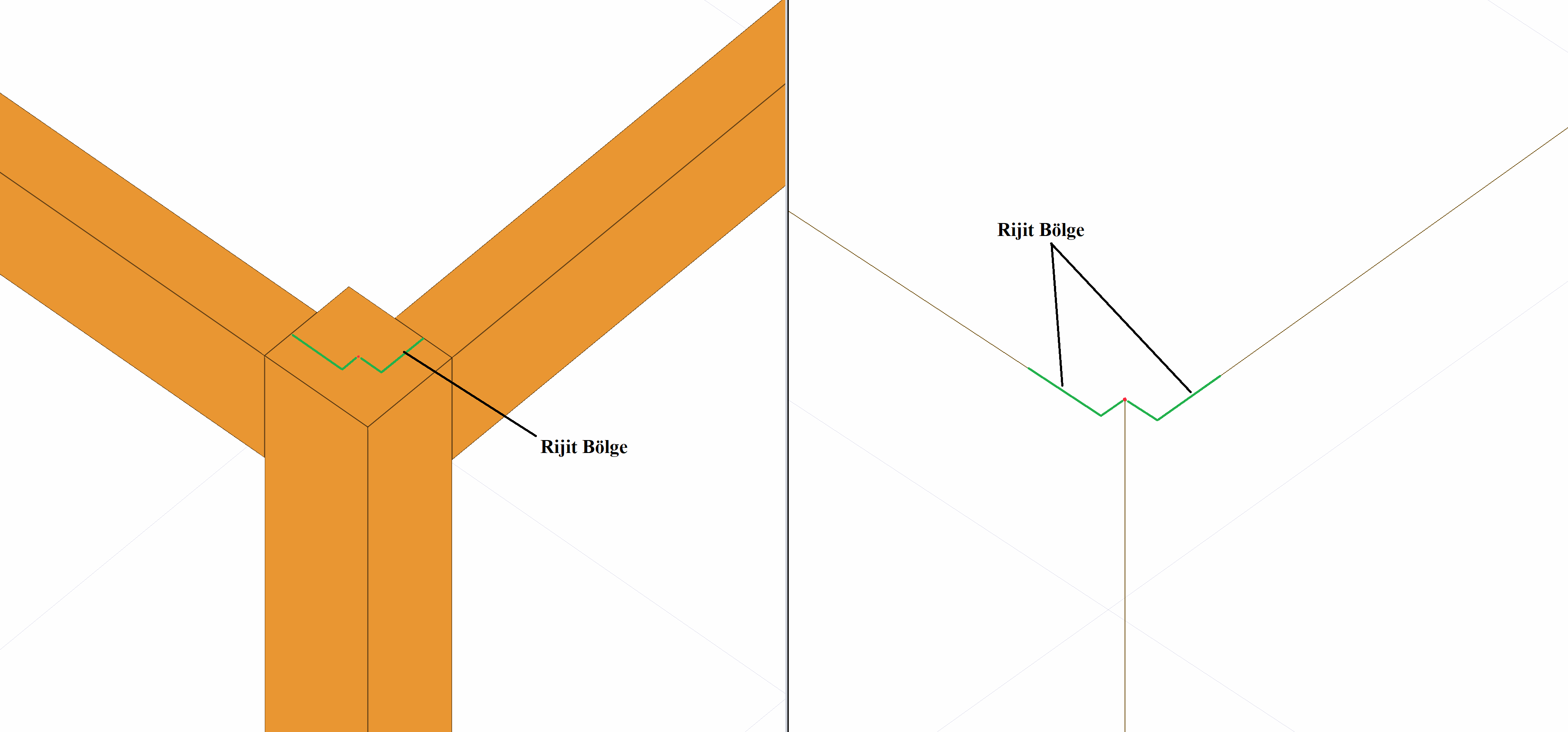 Betonarme sistemlerde birleşim bölgelerinde rijit uçlar tanımlanır ve bu eleman boyutlarına göre otomatik olarak belirlenir.