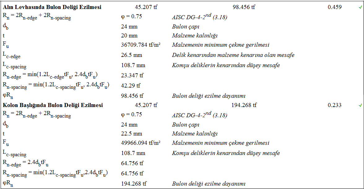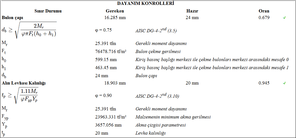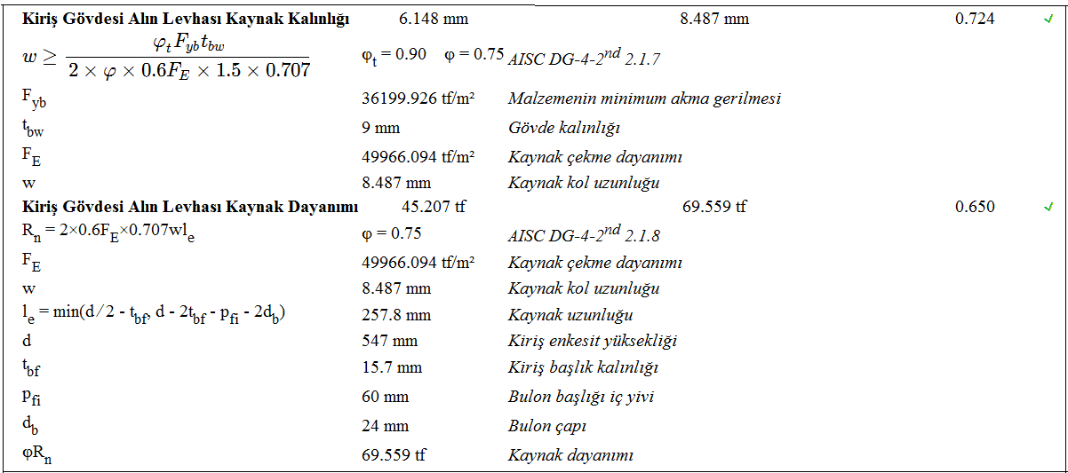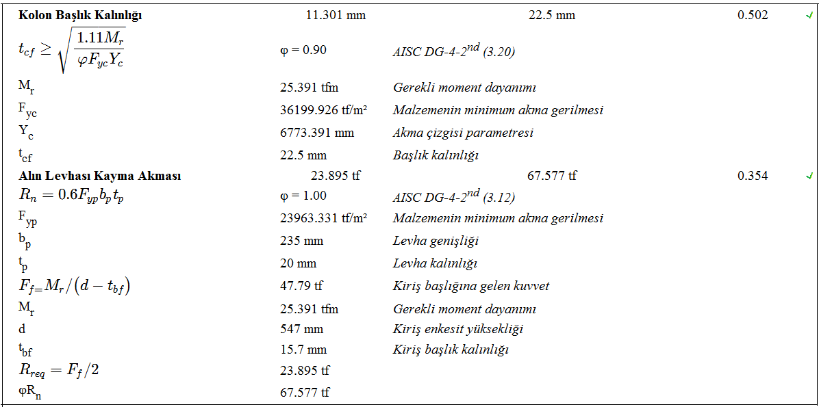 Rijitleştirilmemiş Alın Levhalı 4 Bulonlu Birleşim Raporu (AISC 360-16)