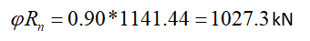 900.396 kN | 1027.3 kN | 0.876 | √ |