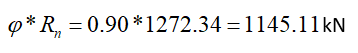 212.57 kN | 1145.11 kN | 0.186 | √ |