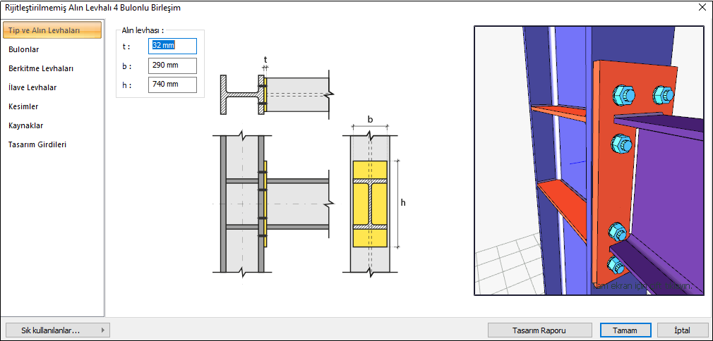 Rijitleştirilmemiş Alın Levhalı 4 Bulonlu Birleşim Tasarımı