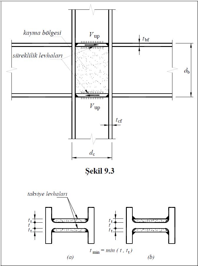 Kayma bölgesi için gerekli kesme kuvveti dayanımı, kolona birleşen kirişlerin olası plastik momentleri etkisinden meydana gelen kolon kesme kuvveti kullanılarak hesaplanır.
