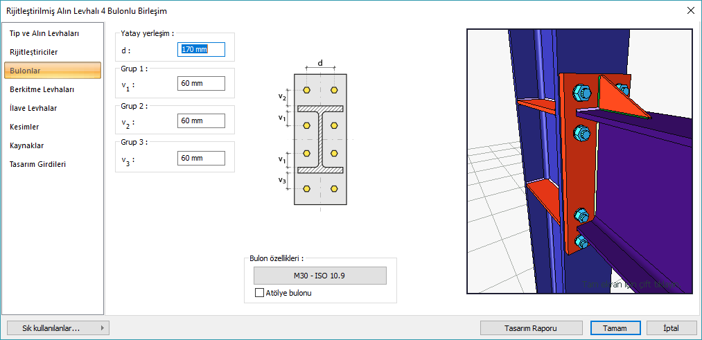 Grup 3 ![]() Bulonları kirişe uzaklık değeri girilir. Girilecek değerler şematik çizimde gösterilmektedir. |