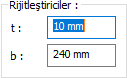 Rijitleştiriciler ![]() Rijitleştiriciler değerler girilerek belirlenir. Girilecek değerler şematik çizimde gösterilmektedir. |