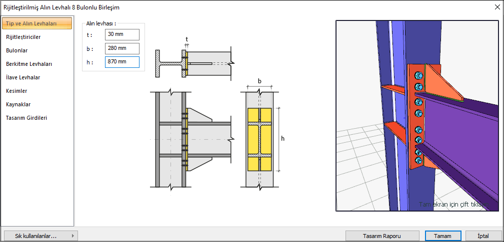 Rijitleştirilmiş Alın Levhalı 8 Bulonlu Birleşim Tasarımı