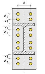 Şematik çizim ![]() Birleşim ve bulon yerleşim değerleri şematik çizim üzerinde gösterilir. |