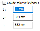 Rijitleştiriciler ![]() Rijitleştiriciler değerler girilerek belirlenir. Girilecek değerler şematik çizimde gösterilmektedir. |