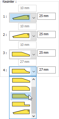 Kesimler ![]() Levhaların sahada kolay montajı için şev kullanılmasına, şev tipine ve geometrik özellikleri değer girilerek belirlenir. |