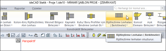 Birleşim sekmesinden Rijitleştirme Levhaları ( Berkitmeler) ikonunu tıklayın.
