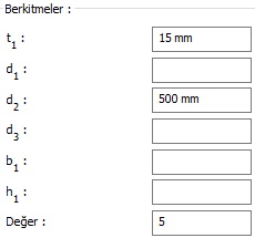 Berkitmeler ![]() Berkitme levha sayısı ve özellikleri değerler girilerek belirlenir. Girilecek değerler şematik çizimde gösterilmektedir. |