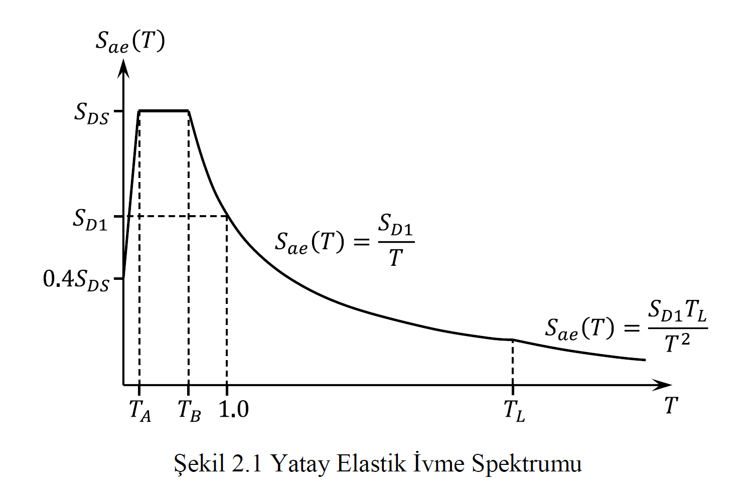 RYTEİE 4.3.1 'e uygun olarak, deprem hesabında kullanılmak üzere Yatay elastik tasarım spektrumu, Sae(T), periyoda bağlı olarak RYTEİE Denklem 2.3 ile oluşturulur.