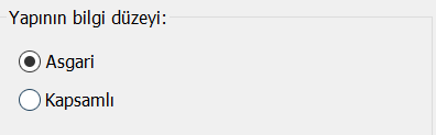Yapının bilgi düzeyi ![]() Riskli binaların tespit edilmesine yönelik yayımlanan yönetmelikte Tablo 4.1 'de verilen esaslara göre yapının bilgi düzeyi seçilir. Taşıyıcı elemanların kapasiteleri hesaplanırken mevcut malzeme dayanımı bilgi düzeyi katsayısı ile çarpılır. Bilgi düzeyi katsayıları; Asgari -> 0.90 Kapsamlı -> 1.00 |