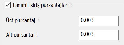 Tanımlı kiriş pursantajları ![]() Seçenek işaretlenirse kiriş kapasite momentleri, verilen pursantaj değerleri dikkate alınarak hesaplanır. |
