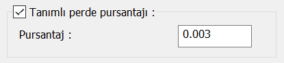 Tanımlı perde pursantajı ![]() Seçenek işaretlenirse perde kapasite momentleri, verilen pursantaj değerleri dikkate alınarak hesaplanır. |
