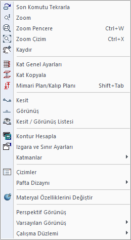 Sağ tuş menüde en çok kullanılan komutlar listelenir. Eğer bir obje üzerindeyken ya da seçildikten sonra sağ tuş menü açılırsa o objeye ait özel komutlar da listeye eklenir. Sağ Tuş Menü Göster özelliği aktif hale getirilirse farenin sağ tuşu tıklanarak sağ tuş menüye ulaşılır.