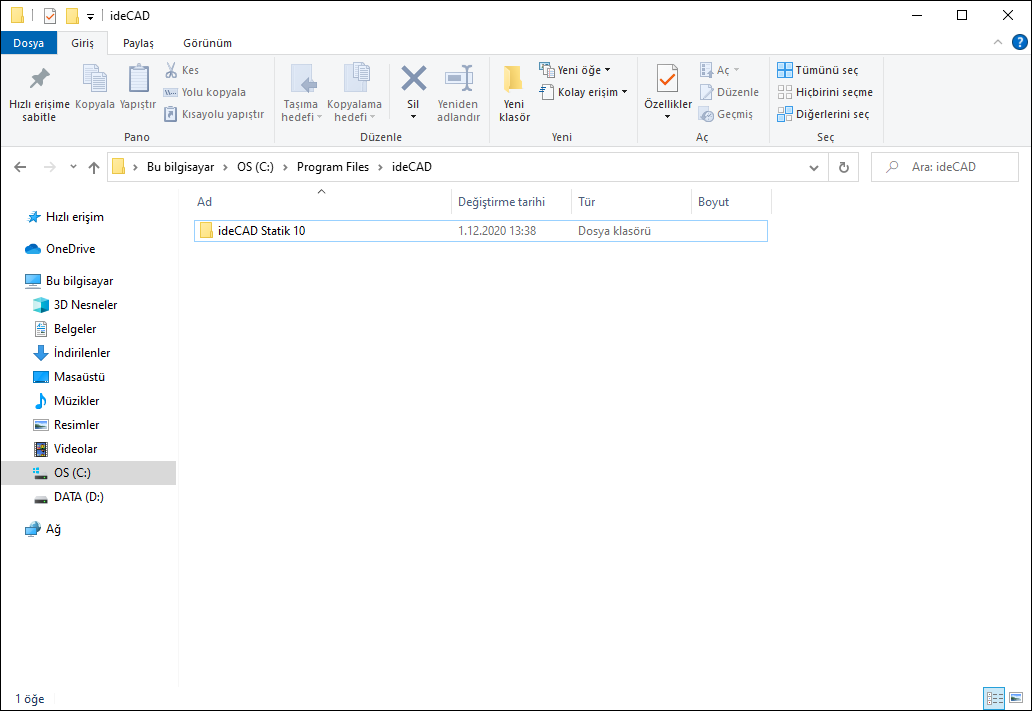 C:\Program Files\ideCAD\ideCAD Statik 10 klasörünü siliniz.