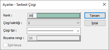 Serbest çizgiye ait renk, çizgi kalınlığı ve çizgi tipi ayarlanır.