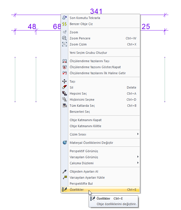 Ayarlarına girmek istediğiniz serbest ölçülendirmeyi seçin farenin sağ tuşuna tıklayarak açılan menüden Özellikler satırına tıklayın.
