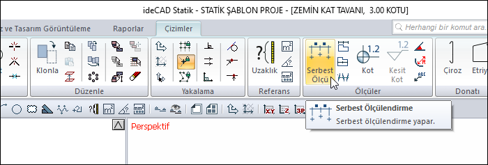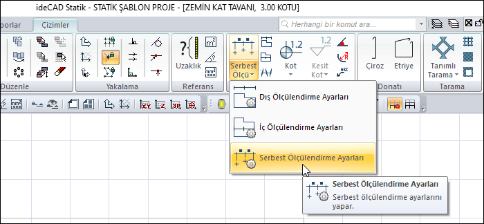 Ribbon menüde Çizimler sekmesinde Serbest Ölçü altından ulaşabilirsiniz.