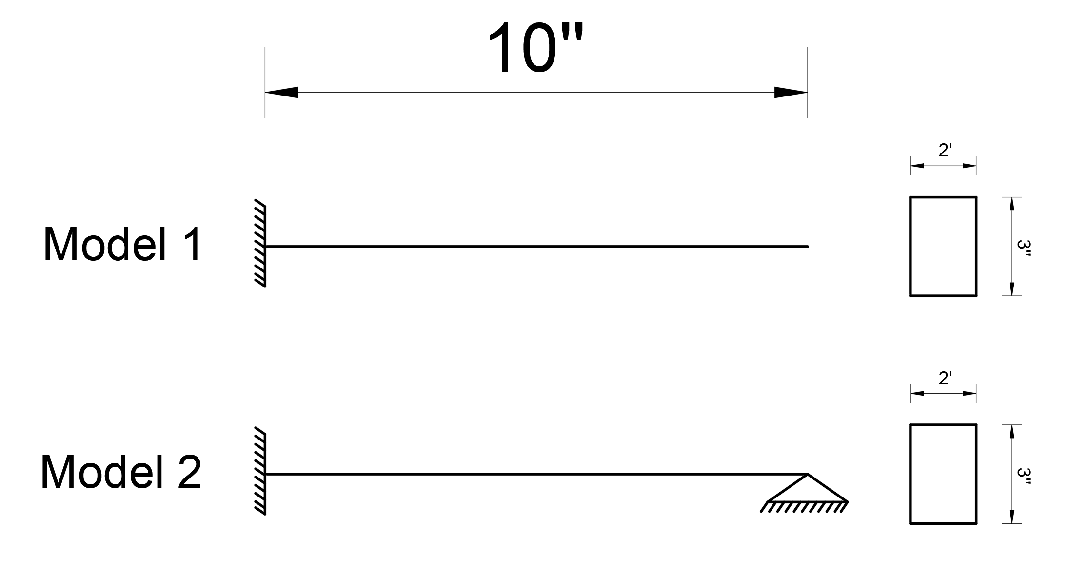 Bu örnekte birinci 10 inch uzunluğunda iki adet dikdörtgen çubuk eleman kullanılmıştır. Bu çubuk elemanlardan birinin bir ucu ankastre mesnetli olacak şekilde, diğer çubuk eleman bir ucu ankastre mesnetli diğer ucu sabit mesnetli olacak şekilde tanımlanmıştır.