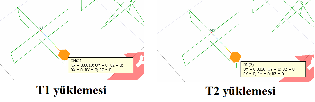 ΔT1=0.0013 in ve ΔT2=0.0026 in sonuçları ideCAD Statik ile birebir aynıdır.