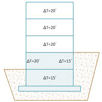Yapının elemanları arasında da sıcaklık farkı verilmesi ihtiyacı olabilir. Örneğin yapının arazi eğiminden dolayı açık yüzündeki elamanlarında 20° iken gömülü yüzündeki elamanlarında 15° olması durumunda şekildeki gibi eleman özelliklerinden sıcaklık yükü tanımlanabilir.