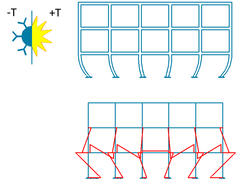 Sıcaklık değişimi elemanlarda doğrudan eğilme gerilmeleri oluşumuna neden olmaz ancak birbirlerine düğüm noktalarından bağlı bir döküm elemanların eksenel deformasyon yapması ve mesnetlenme koşulları eğilme momentleri oluşumuna neden olmaktadır.