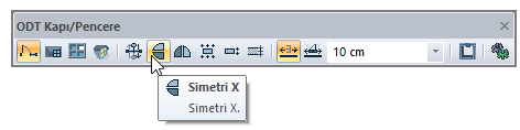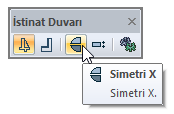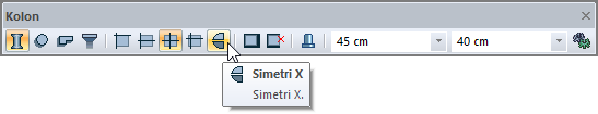 Simetri X komutuyla, çizim aşamasında objenin X eksenine göre simetrisi alınır. Simetri X komutu kapı/pencere, kolon, sürekli temel ve istinat duvarı çizerken kullanılır.
