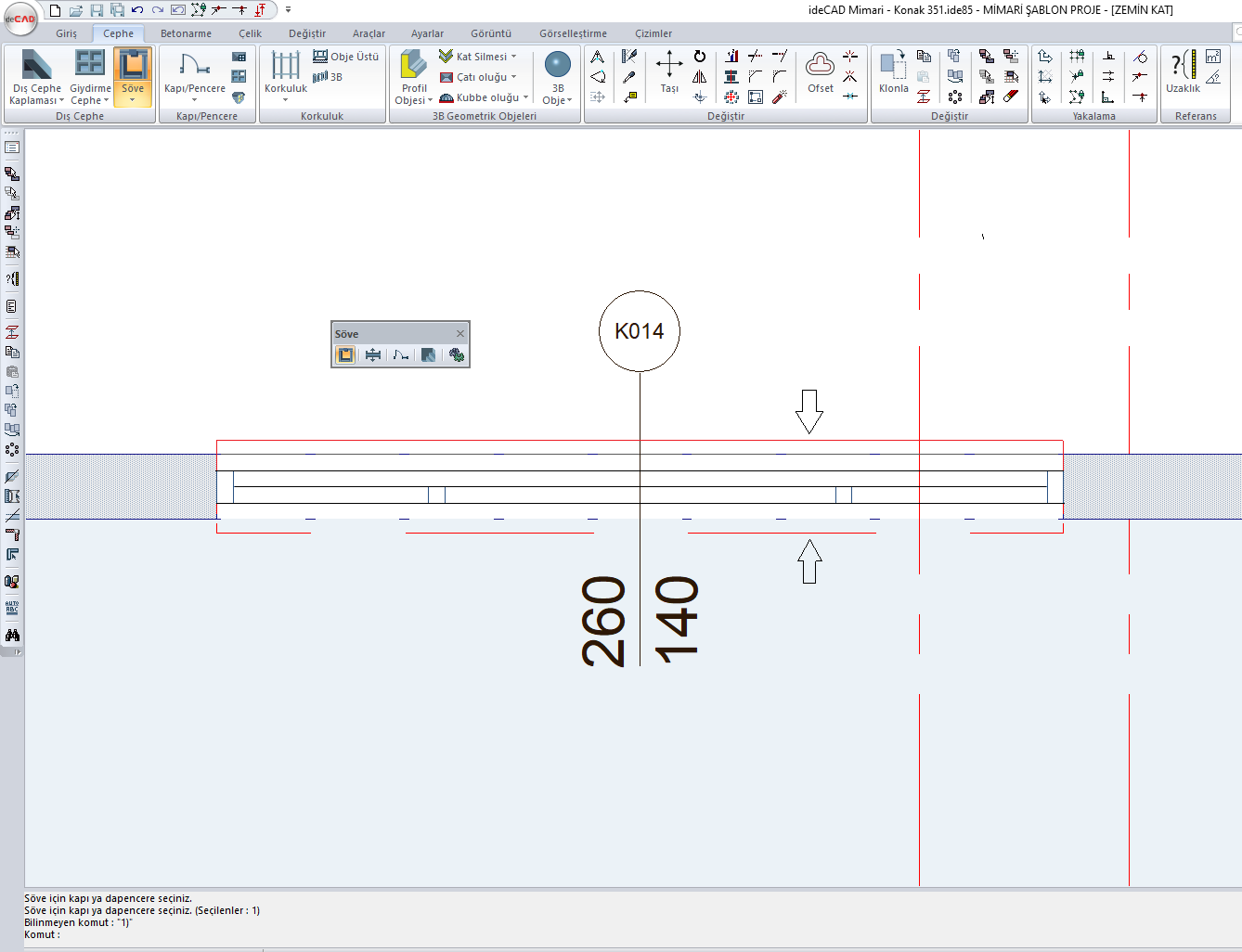 Pencere ve kapıya söve yerleştirilirken "Space- bar(boşluk)" tuşuna basılırsa sövenin simetrisi alınır.