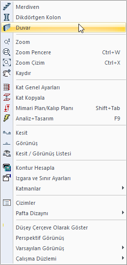 ideCAD Ayarları diyaloğunda Sağ Tuş ile Menü Göster işaretliyken klavyeden Ctrl tuşu ile birlikte farenin sağ tuşuna basmak