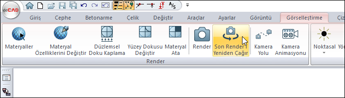 Son Render'ı Yeniden Çağır komutu ile bir önceki alınan render tekrar açılır.