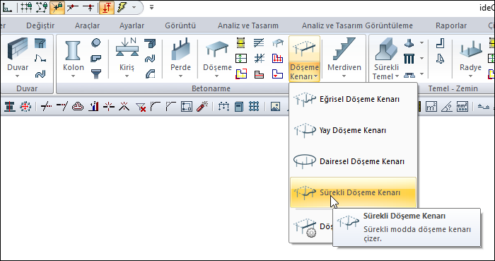 Sürekli döşeme kenarı çizilecek alan ![]() |