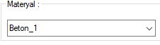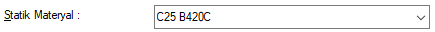 Statik malzeme ![]() Elemanda kullanılacak statik malzemeyi listeden seçin. Statik malzeme betonarme elemanı olarak Yapı Ağacında Malzemeler altında tanımlanabilir. |