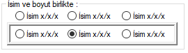 İsim ve boyut birlikte ![]() İsim ve boyut birlikte seçeneği işaretli iken sürekli temel isminin ve boyutunun kirişe göre yazılacağı konumu diyalogtaki şekle göre belirleyiniz. Program sürekli temel oluşturulduğunda seçilen konuma göre ismi yerleştirecektir. |