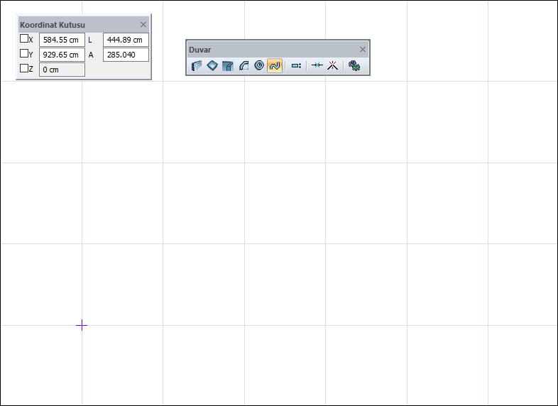 Çizim alanında duvarın başlangıç noktasının belirlenmesi ![]() |